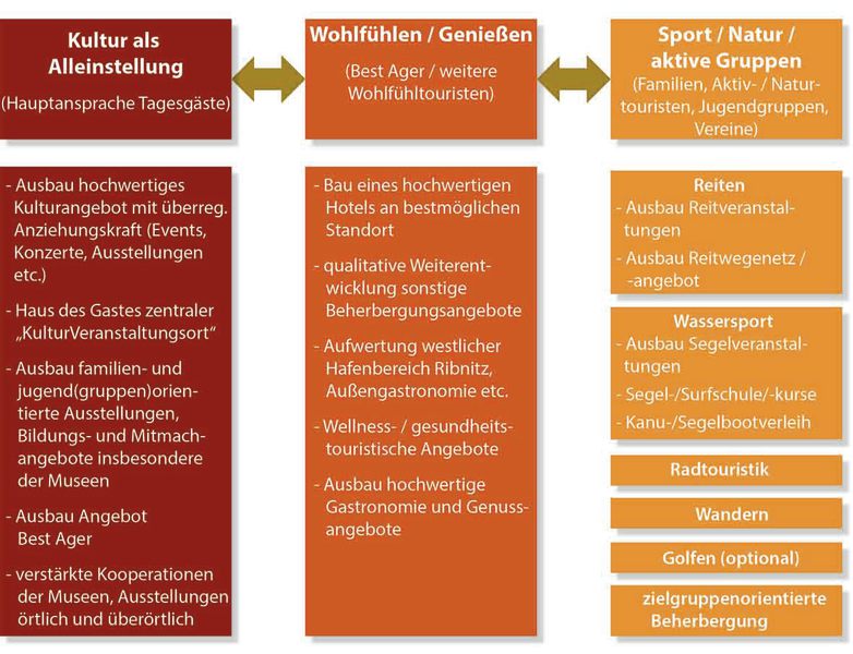 In diesem Zusammenhang wurde für die weitere touristische Entwicklung der Stadt Ribnitz-Damgarten einschließlich der ländlichen Ortsteile eine entsprechende mit den Nachbarn in der Tourismusregion abgestimmte Konzeption erarbeitet.