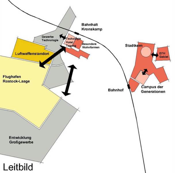 Die weitere demographische und wirtschaftliche Entwicklung der Stadt ist maßgeblich von den Fortschritten bei der Ansiedelung von Gewerbe und Dienstleistung im Umfeld von Flughafen und „Airpark“ abhängig. Daher stellt das gesamtstädtische Konzept für die zukünftige Siedlungs- und Infrastrukturentwicklung einen Entwicklungsrahmen dar, mit dem flexibel auf die tatsächlich eingetretene Entwicklung reagiert werden kann.