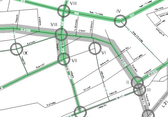 Um detaillierte Aussagen zur Funktionsfähigkeit des Straßennetzes treffen zu können, wurden neben der Bestandsaufnahme des technischen Zustandes auch Erhebungen zur Nutzungsintensität der verschiedenen Verkehrsteilnehmergruppen (KFZ, Fahrrad, Fußgänger) notwendig. Hierzu wurde aufbauend auf einem System von Zählpunkten eine umfassende Verkehrszählung durchgeführt. Schwerpunkt der anschließenden Analyse ist die Untersuchung der Verträglichkeit der einzelnen Verkehrsarten miteinander. Im Ergebnis können Gefahrenpunkte verortet und klassifiziert sowie planerisch entschärft bzw. behoben werden.
