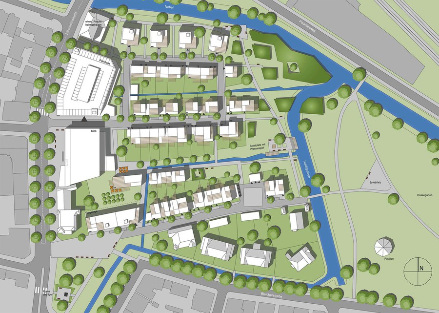 Im weiteren Verlauf übernimmt unser Büro die Weiterentwicklung der funktional-gestalterischen Konzeption und arbeitet diese entsprechend in einen Bebauungsplan ein.